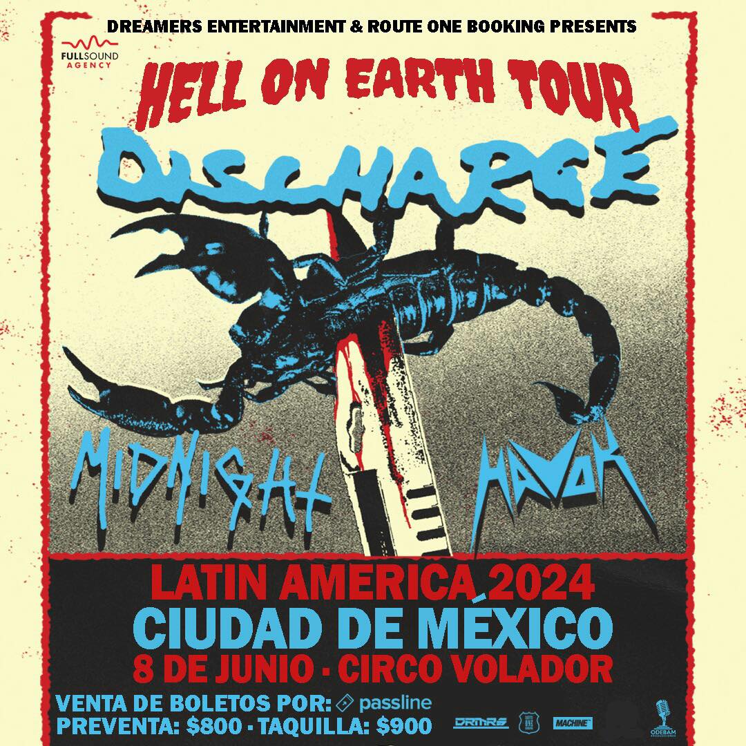 El pasado 8 de Junio el Circo Volador se estremeció con uno de los shows más brutales del año y es que gracias a la colaboración de Odebam Producciones, Dreamers Entertainment, Route One Booking y Fullsound Agency fue posible traer a nuestro país a 3 grandes bandas que tenían una sola encomienda: Hacer que la … Continuar leyendo ¡Discharge, Midnight y Havok destrozaron el Circo Volador de la CDMX! (2024)